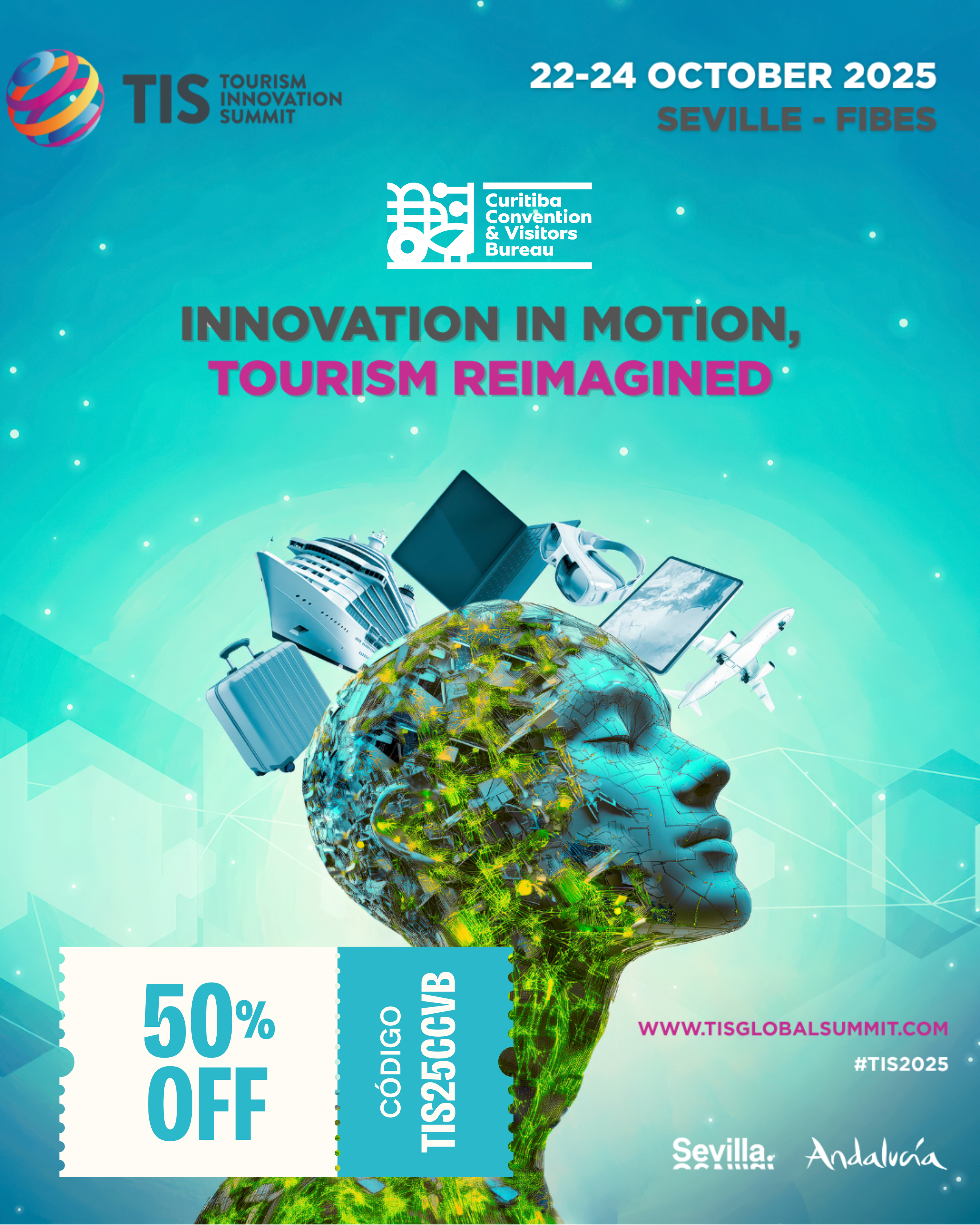 Curitiba Convention leva marca VisitCuritiba ao cenário global no Tourism Innovation Summit 2025, em Sevilha